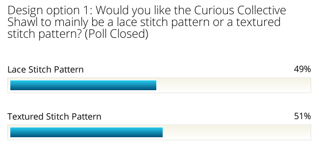 The results are in for week one of the Curious Collective Shawl Project! Incredibly, after 1550 people voted, the results were only 2% apart
