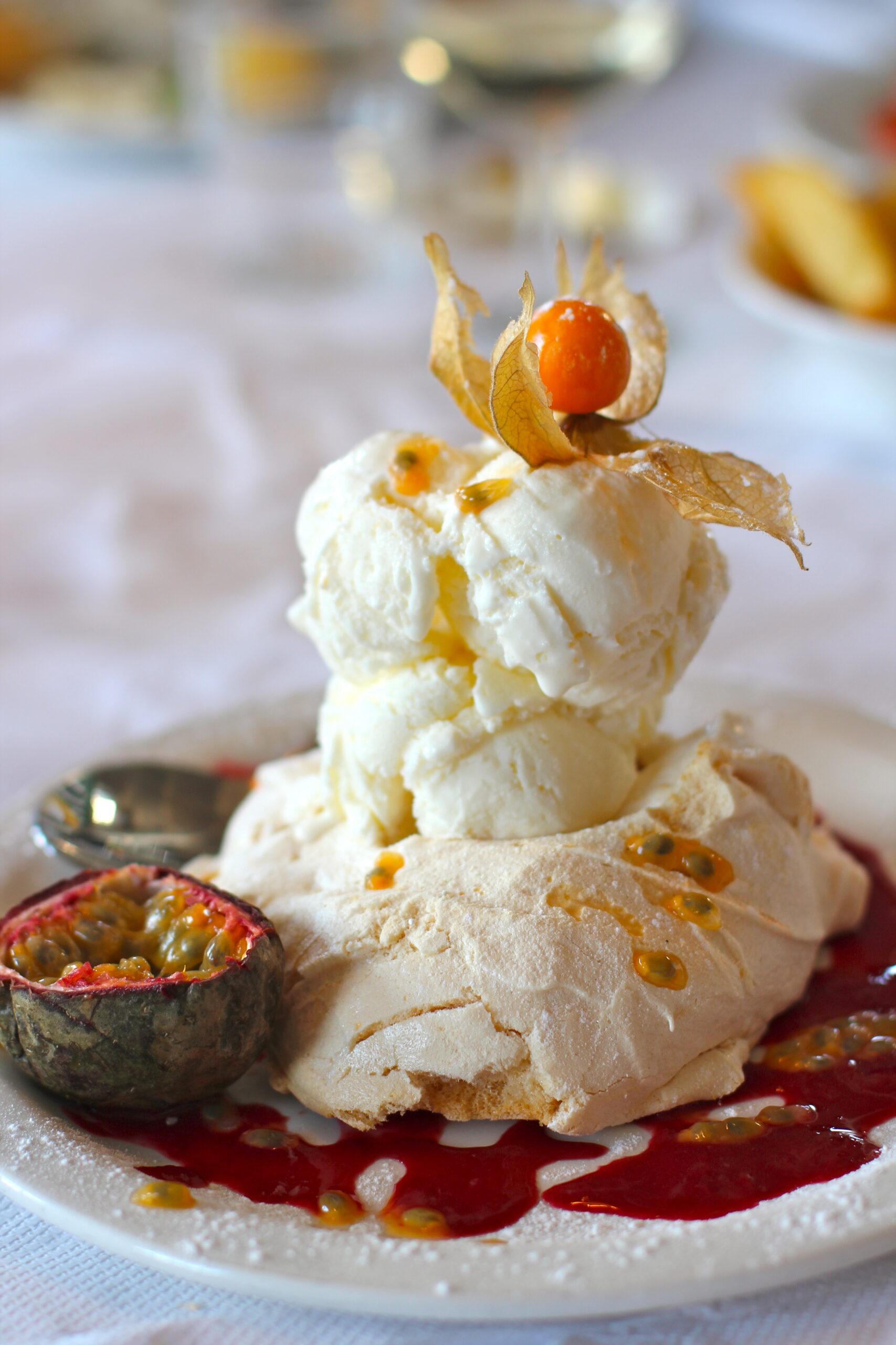 The pudding was delicious – coconut flavoured meringue wtih raspberry and passionfruit. I was too slow to snaffle the passionfruit from Miss S. Also a rare delicacy here!