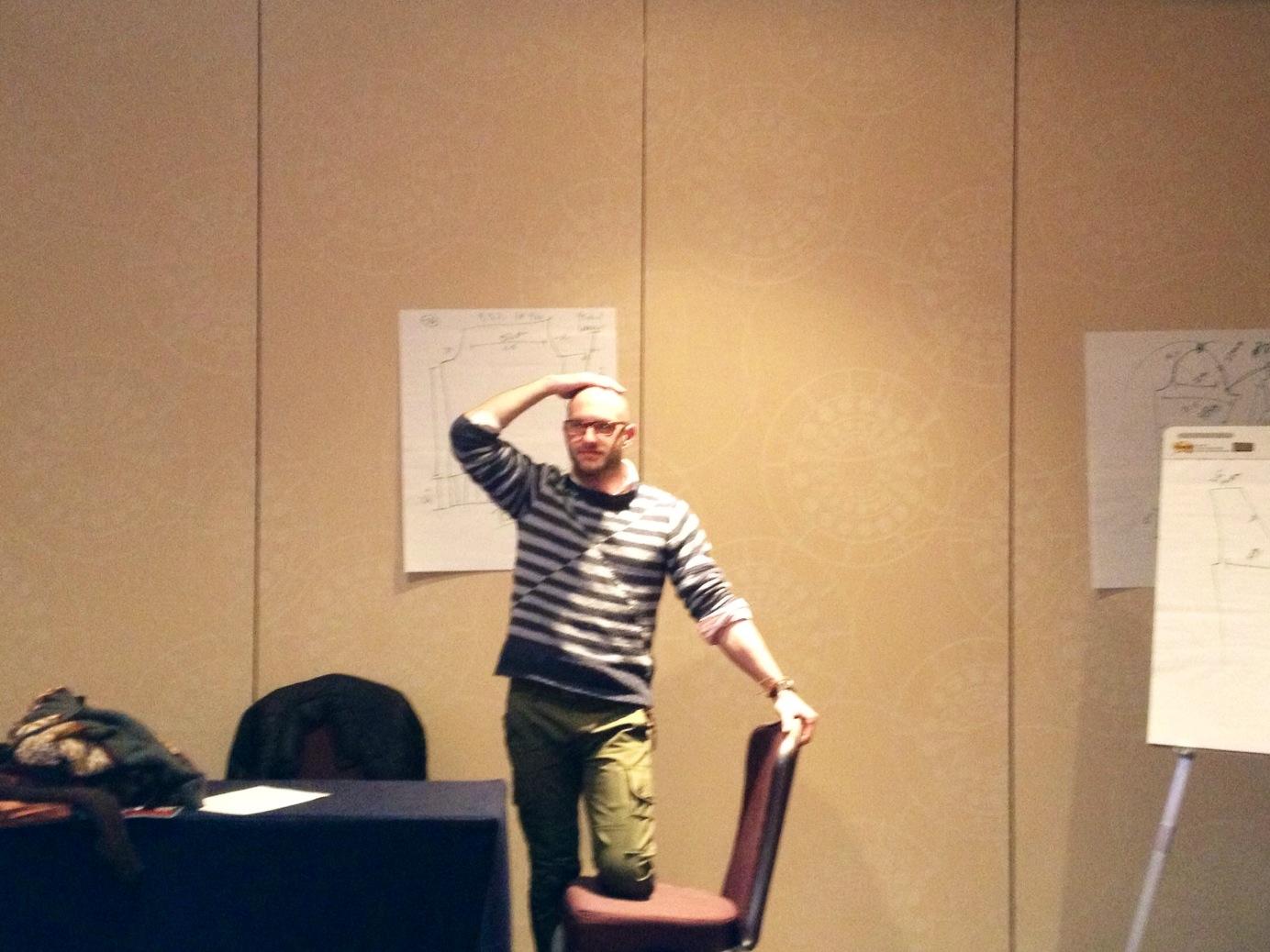 Again there was a theme of focussing on absolute attention to detail to make your knitting or design really great. Josh’s comment, “Why bother designing something you can buy at the GAP?” has stuck in my mind. I am now thinking beyond comfort and easy knitting to being more adventurous. I love the idea of making a lasting piece of art rather than just a garment to throw on to keep me warm (although that is a nice result too).